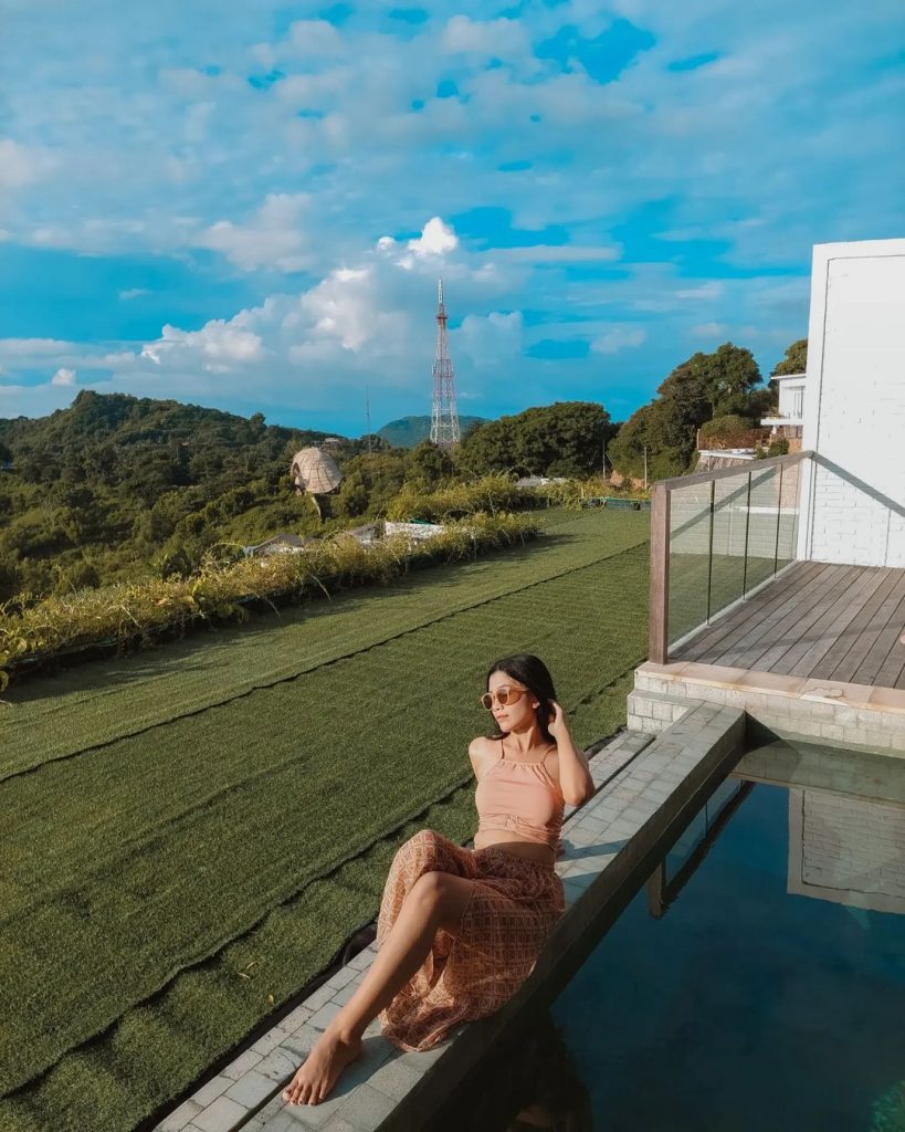 Pemandangan dari villa ini jangan di tanya, juara dan bikin pikiran hening. Kau dapat menyaksikan keolakan pantai dan indah bukit sekitar villa. Di tambah dengan suasana villa yang sejuk sekalian betah. Bangunan villa juga kelihatan unik dan instagramable.